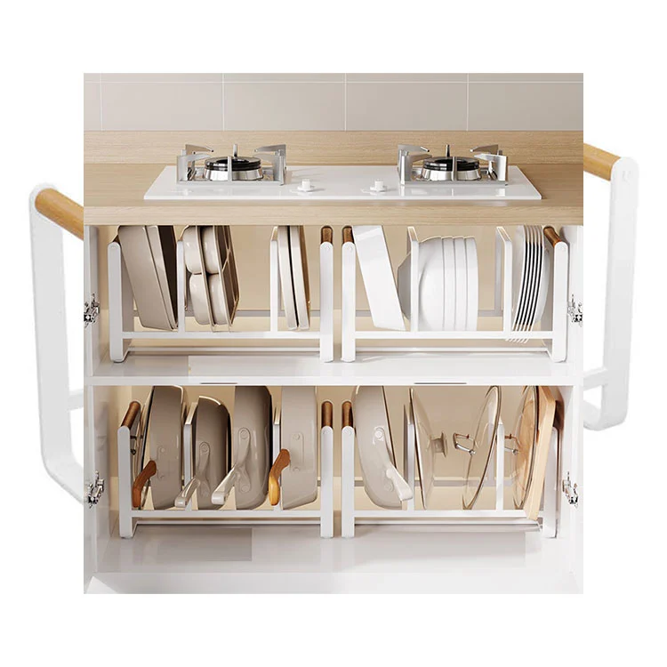 Çok bölmeli tasarım, tencerelerin ve kapaklarının (veya diğer mutfak eşyalarının) aynı anda saklanmasına olanak tanıyarak "istiflenmiş" ve dağınık düzenlemelere olan ihtiyacı ortadan kaldırır.