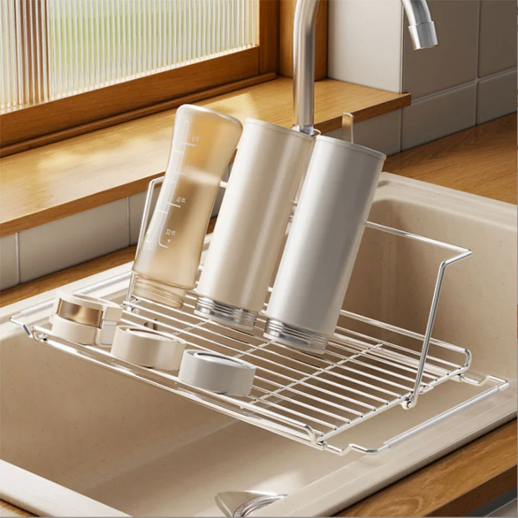 Çok işlevli paslanmaz çelik lavabo drenaj rafımızla Küçük Mutfak Alanınızı En Üst Düzeye Çıkarın! Lavabonuzun üzerine güvenli bir şekilde oturacak şekilde tasarlanan bu ürün, ekstra yer talep etmeden değerli tezgah alanınızı anında genişletir.