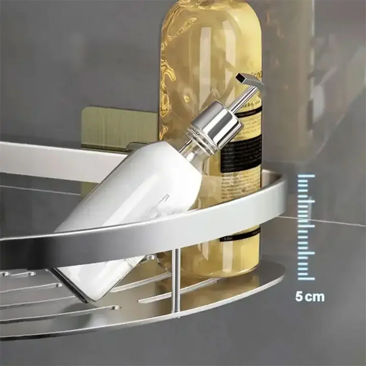 Bu süslü banyo rafı, duvarın köşelerinden/açılarından tam olarak yararlanan üçgen yapı tasarımına sahiptir.